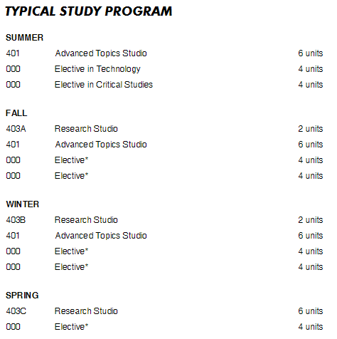 study是只上三个quarter,是唯一一个在主校区上课的一门理论课程,有点类似于国内的西方建筑思潮这类的课程。每学期有三个studio的同学混着上课,作业形式基本上是每周20-40页左右的reading,根据阅读内容写paper。Tech