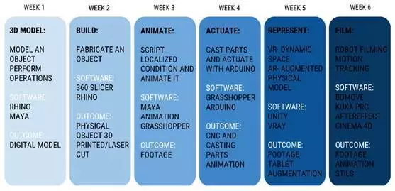 Effect、Premiere、Cinema 4D、Unity及3D打印机和机械臂。由于需要学习的软件很多,每周一次pin