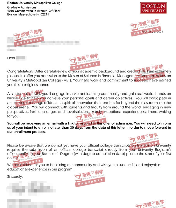 录取结果:BU,Master of Science in Financial Management 波士顿大学金融管理硕士录取