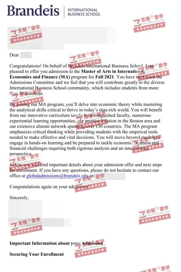 录取结果:Brandeis,MA in International Economics and Finance布兰迪斯大学国际经济与金融硕士录取