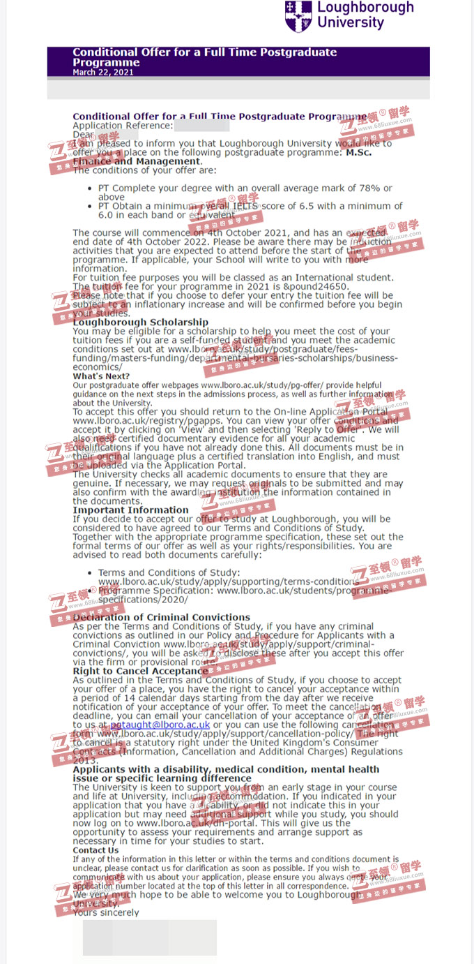 录取结果:Loughborough University,Finance and Management MSc拉夫堡大学金融管理硕士录取