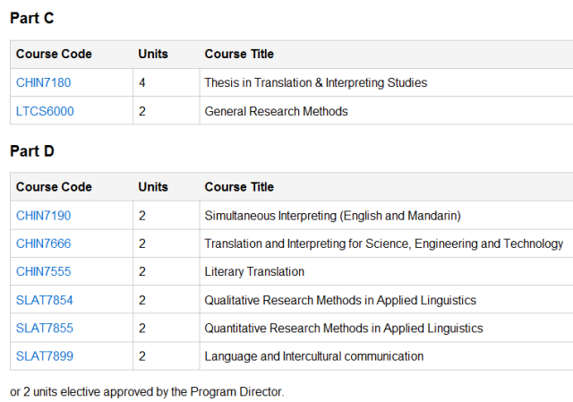 当然,同学们不用担心入读专业翻译课程是否会跟不上,因为学校已经帮大家提前考虑好这个问题了。从口笔译的翻译技巧练习到联系语境学习翻译重点,再到实际操作同声传译,学校会一步一步地带领大家适应好整个学习过程,成为最终的翻译大咖!下图为昆士兰大学官网展示的中文口笔译硕士专业全部课程示例,供同学们参考: