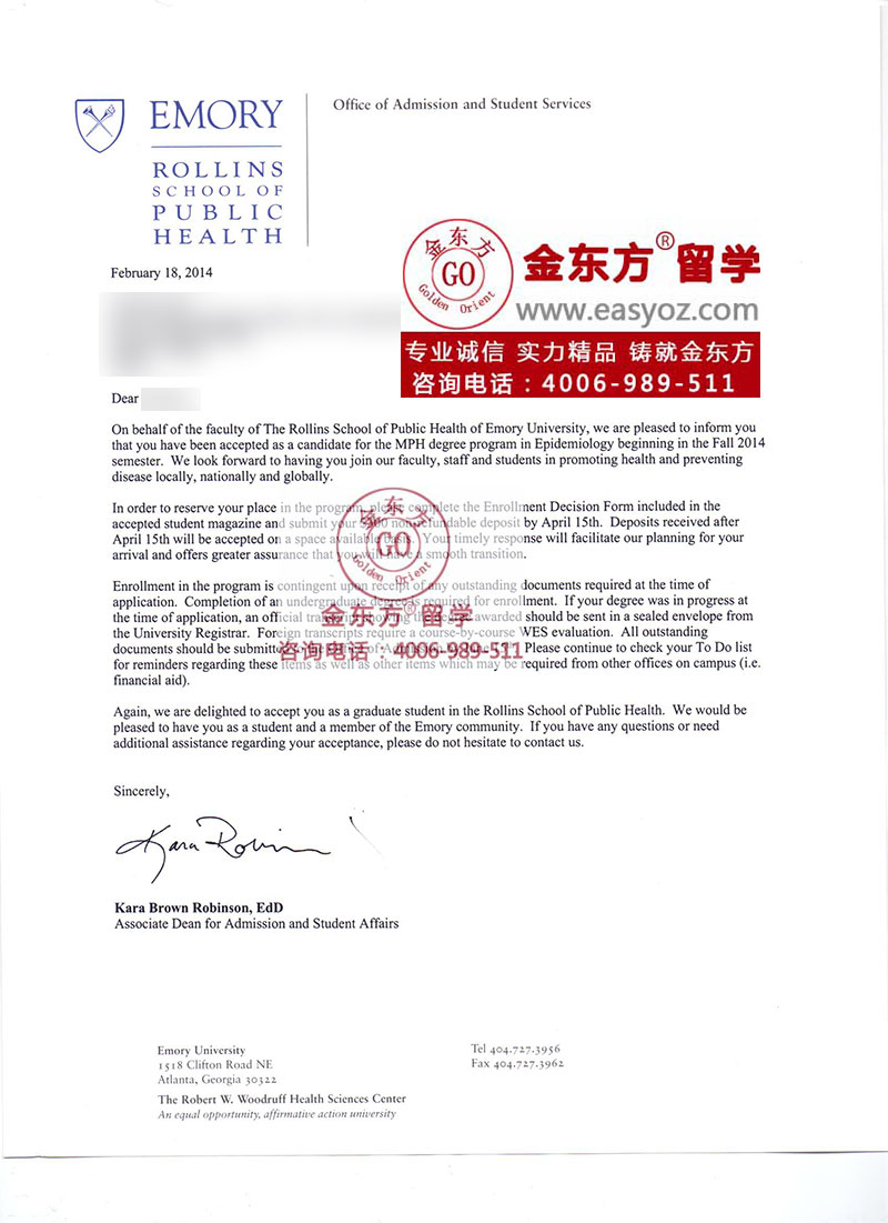 录取结果:Emory University 埃默里大学公共卫生专业硕士录取