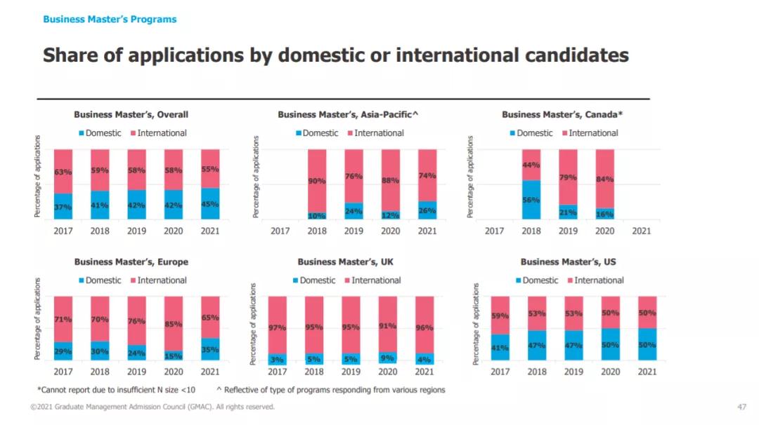 作为全球一流商学院协会组织的管理专业研究生入学委员会(GMAC)每年都会对世界各地的商学院招生办公室进行申请趋势调查(ATS),以便及时了解研究生管理教育(GME)的需求。这一调查有助于更好地了解研究生商科学位的价值以及全球和地区趋势。