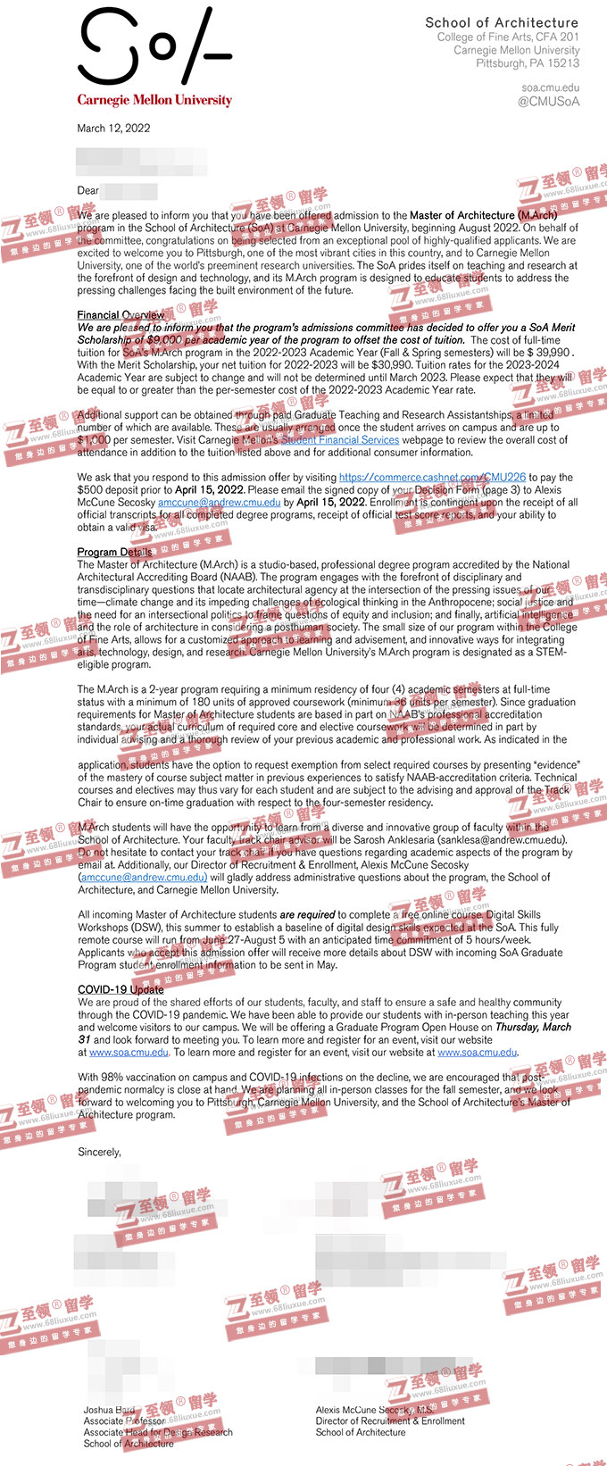 录取结果:Carnegie Mellon University,Master of Architecture (M.Arch) 卡内基梅隆大学建筑学硕士录取,奖学金$9000/年