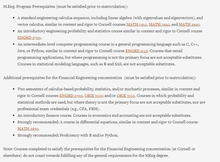 Cornell 的CFEM是 M.Eng. (Operations Research and Information Engineering)的一个concentration. 该项目是一个非常有竞争力且以就业为导向的项目,非常注重传统的数学、科学和工程技能在金融领域中的应用。
