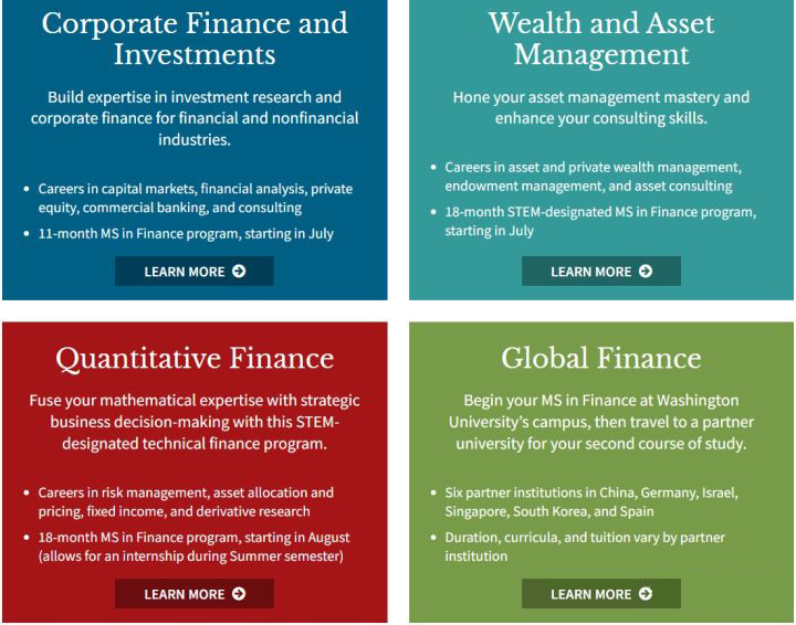 (Corporate Finance and Investments (11 months),Wealth and Asset Management (18 months, STEM),Quantitative Finance (18 months, STEM),Global Finance)