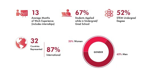 该项目每年约招生约140人。2021年该项目录取141人,录取者的平均工作经验为13个月。详细录取数据如下: