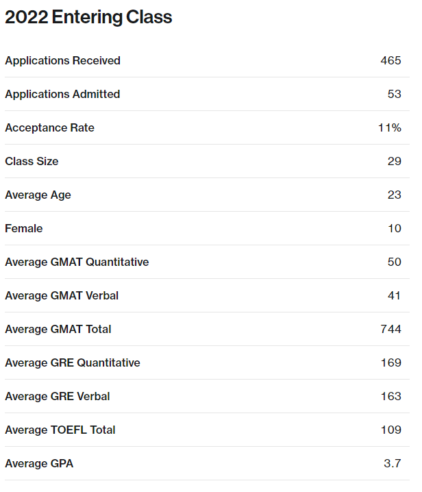 哥伦比亚大学会计硕士2022入学统计数据要点如下: