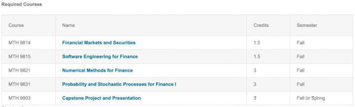 经过广泛的审查,其中包括来自行业从业者、校友和教师的反馈,巴鲁克 MFE 课程经过重新调整,以最适合当前的金融就业环境。新的 Baruch MFE
