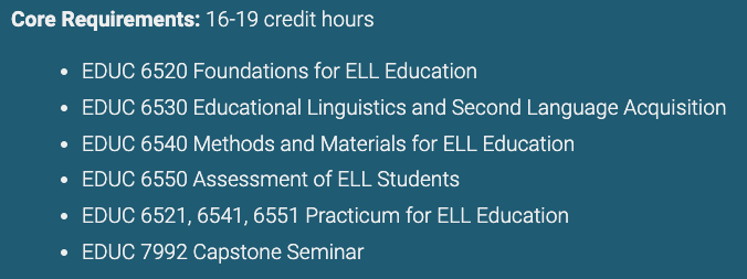 英语语言学习者硕士项目(English Language Learners M.Ed, 以下简称ELL项目)隶属于范德堡大学Peabody College的硕士项目,每年夏季或秋季入学,学制两年,有3个专业分支: