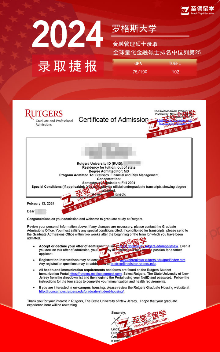 录取结果:Rutgers University,MS Statistics Financial and Risk Management罗格斯大学金融统计与风险管理硕士录取