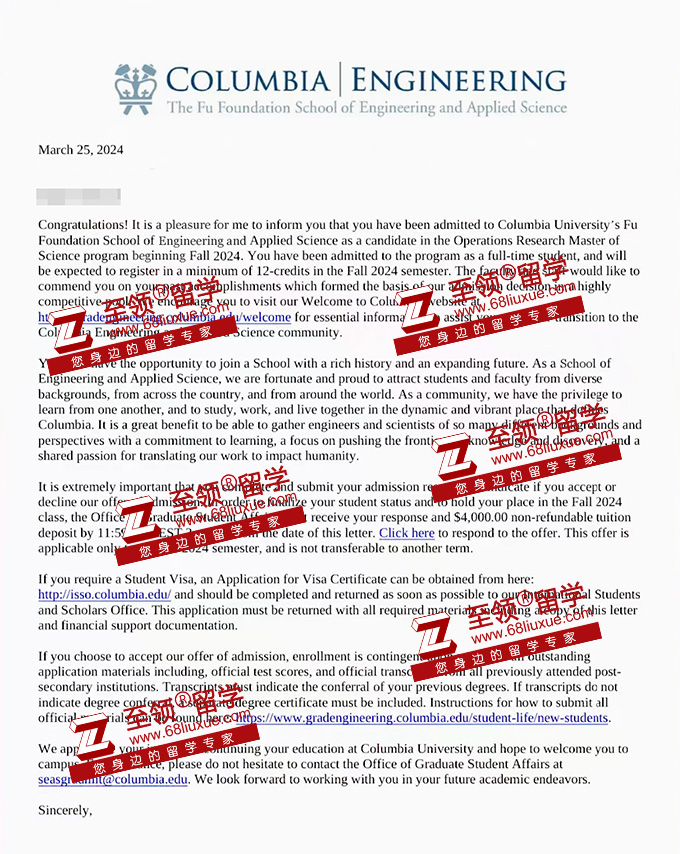录取结果:Columbia University,Master of Science in Operations Research哥伦比亚大学运筹学硕士录取