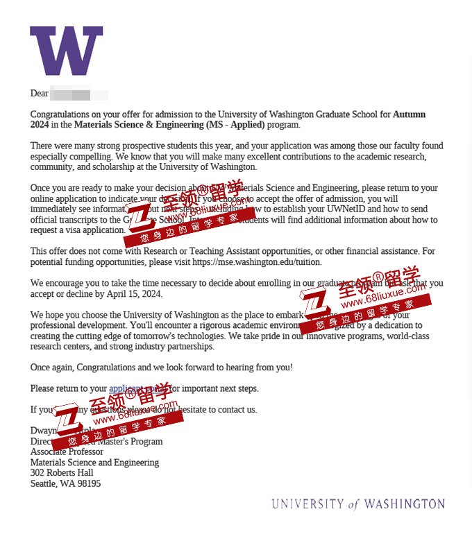录取结果:University of Washington,MS in Materials Science and Engineering 西雅图华盛顿大学材料科学与工程硕士录取