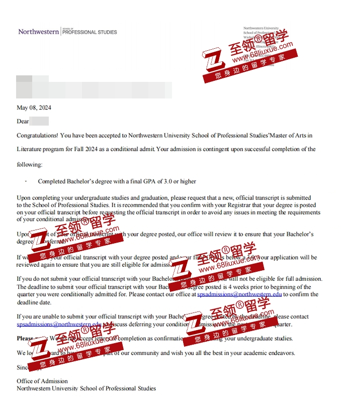 录取结果:Northwestern University,Master of Arts in Literature 西北大学文学硕士录取