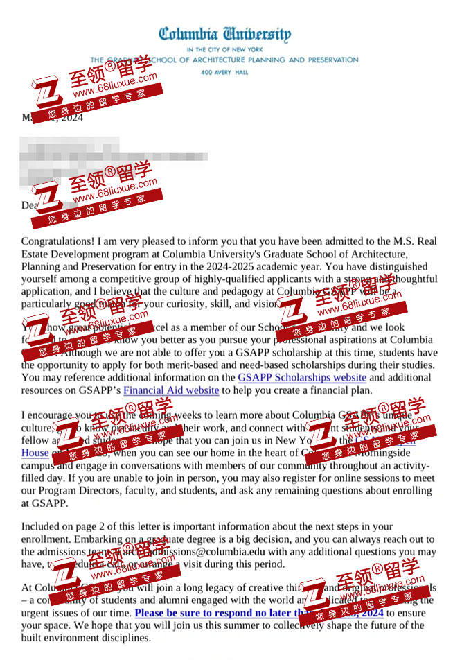 录取结果:Columbia University,MSc in Real Estate Development 哥伦比亚大学房地产开发硕士录取