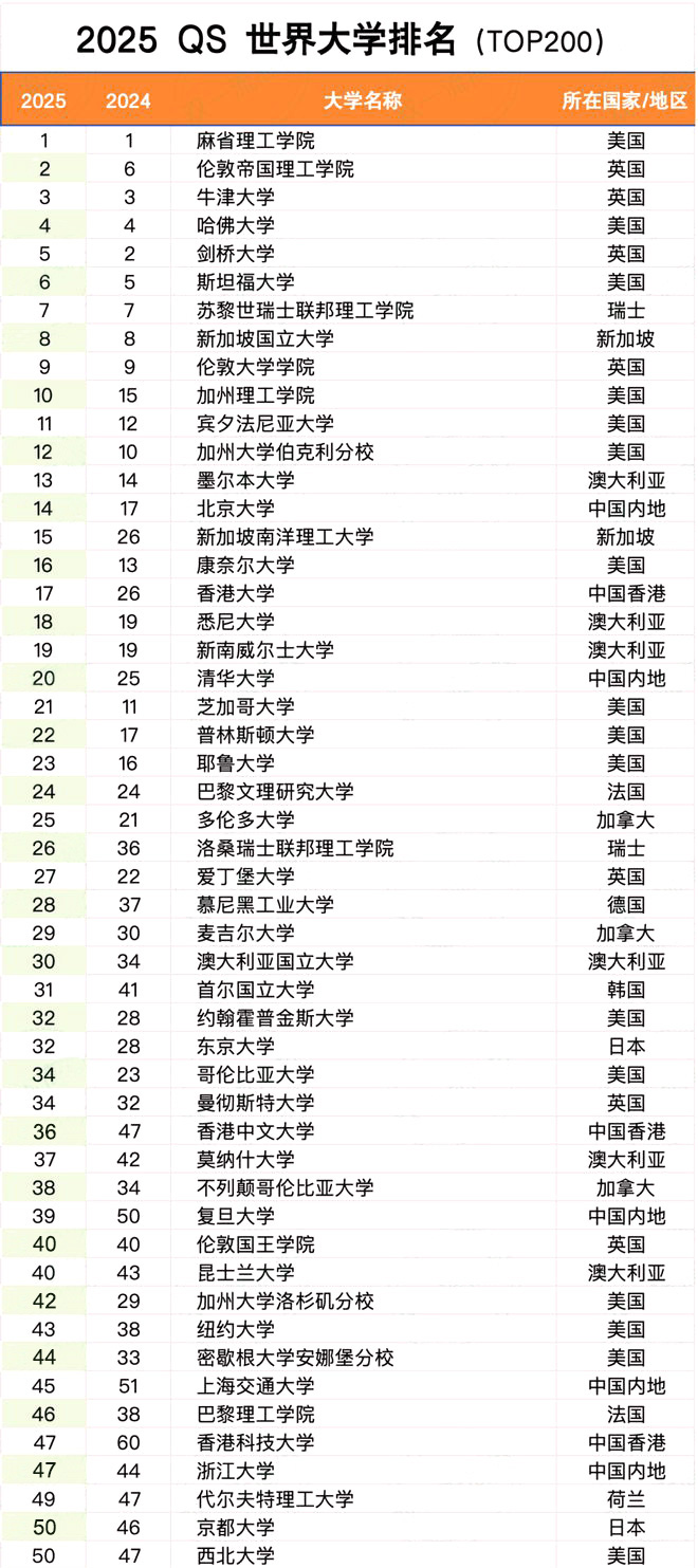 今日凌晨,世界高等教育研究机构Quacquarelli Symonds(QS)发布2025QS世界大学排名,本次排名覆盖来自106个高等教育体系的1500所大学。我们先大致来看一下各国院校的排名变化。