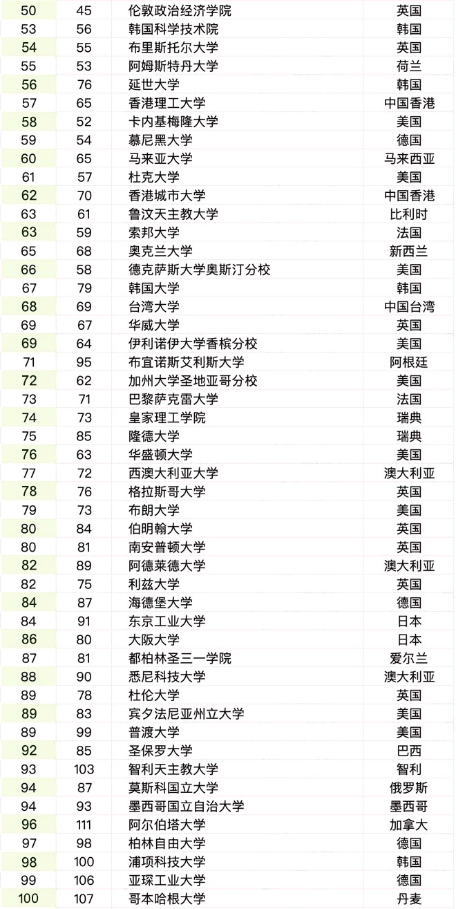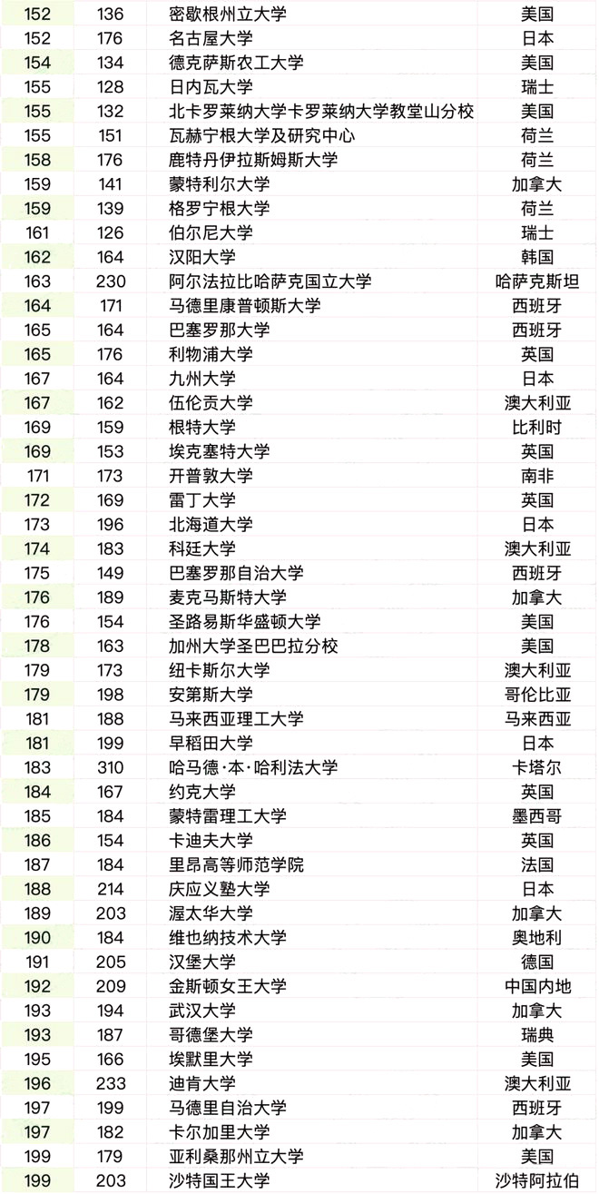 澳大利亚高校保持强劲势头,三所院校进入全球前二十,墨尔本大学升至第13位,新南威尔士大学稳居第19位。