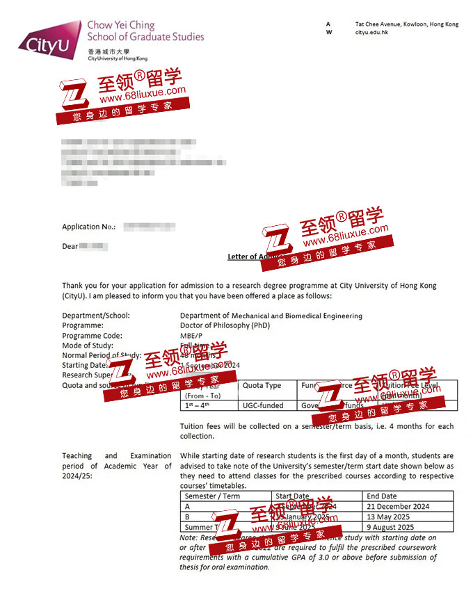 录取结果:City University of Hong Kong,PhD in Mechanical and Biomedical Engineering 香港城市大学机械和生物工程博士录取,奖学金17800港币/月