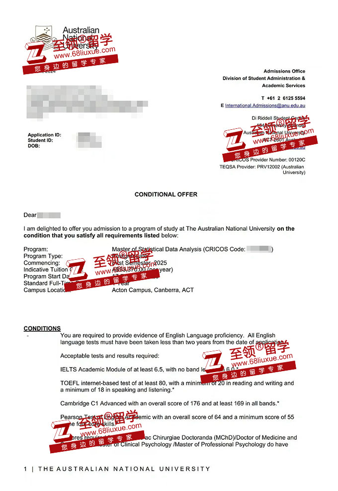 录取结果:The Australian National University,Master of Statistical Data Analysis(MSDA) 澳大利亚国立大学统计数据分析硕士录取