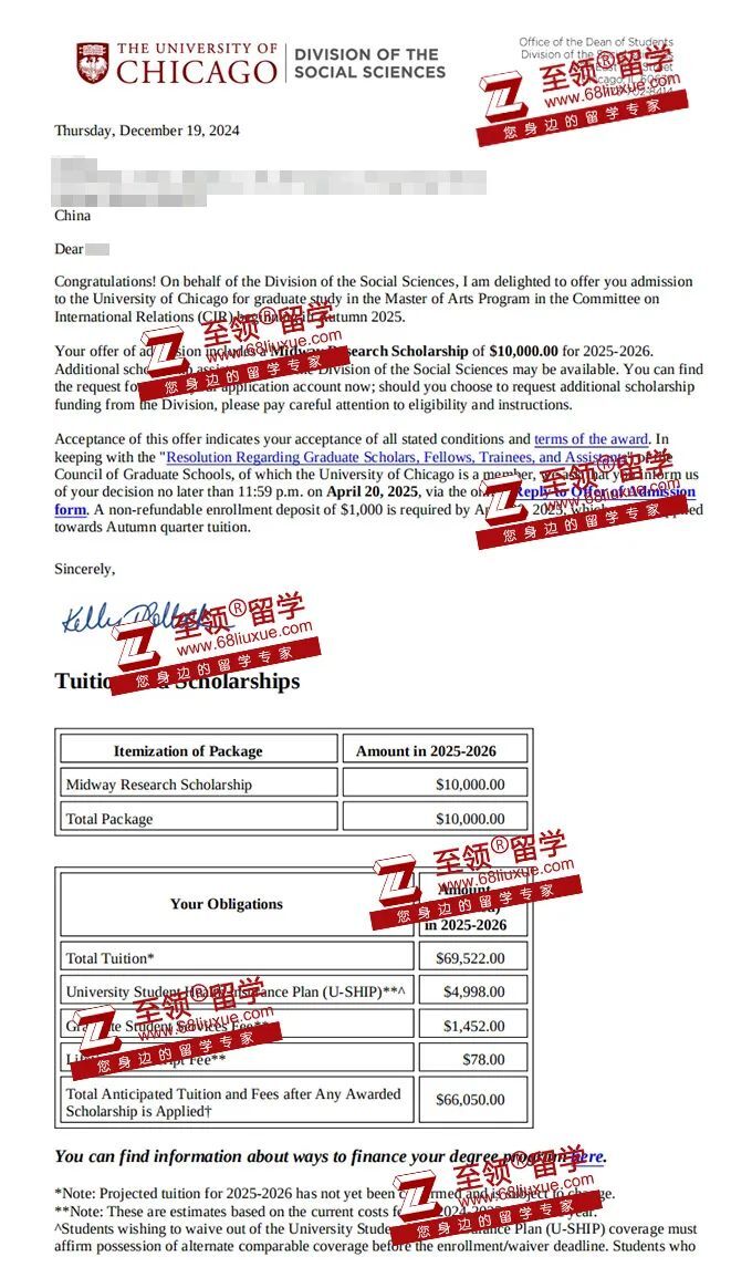 录取结果:芝加哥大学国际关系硕士录取,+$1万 奖学金
