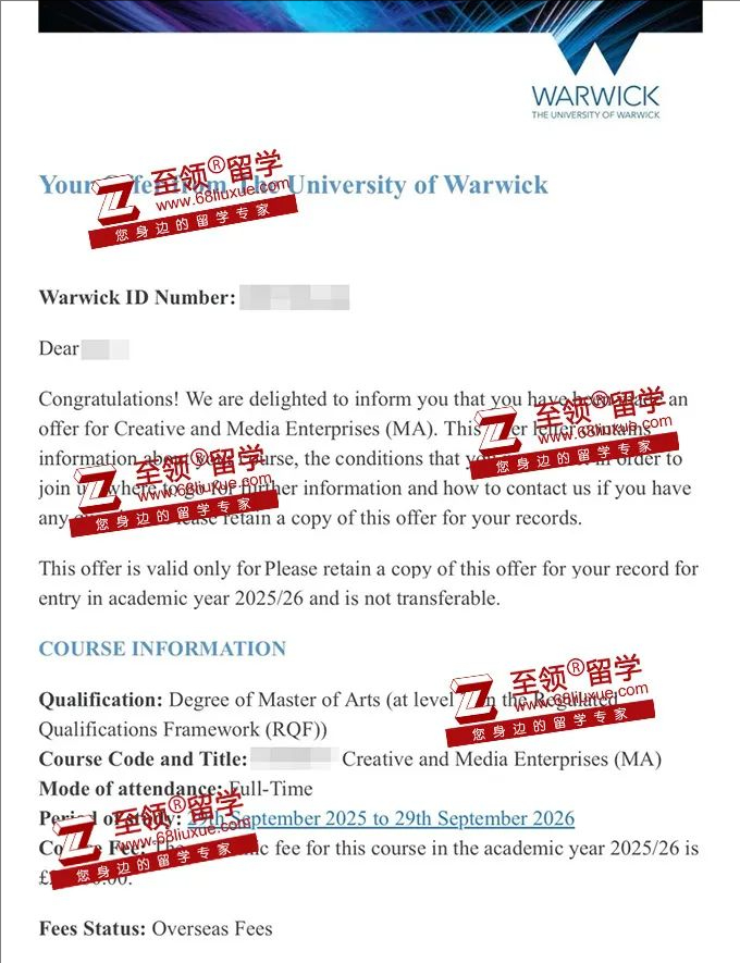 华威大学稳居英国前十,QS排名前100,MA Creative and Media Enterprises项目申请难度相当大,录取率常年在10%以下。