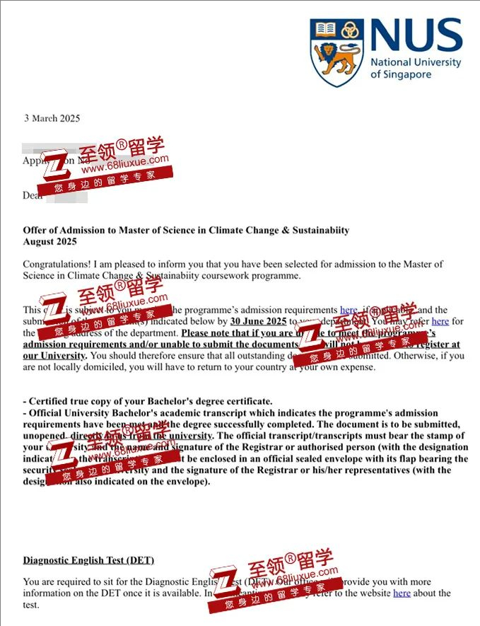 录取结果:新加坡国立大学气候变化与可持续性硕士录取