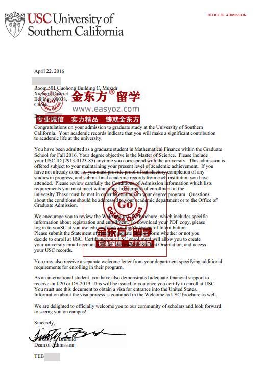 录取结果:南加州大学(USC),Master of Science in Mathematical Finance