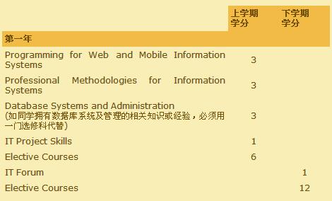 本课程分为两部分-必修科目 (共 11 学分) 及选修科目 (共 18 学分)。如果同学拥有数据库系统及管理的相关知识或经验,必须把必修科目“Database Systems and Administration”用其他选修科代替。