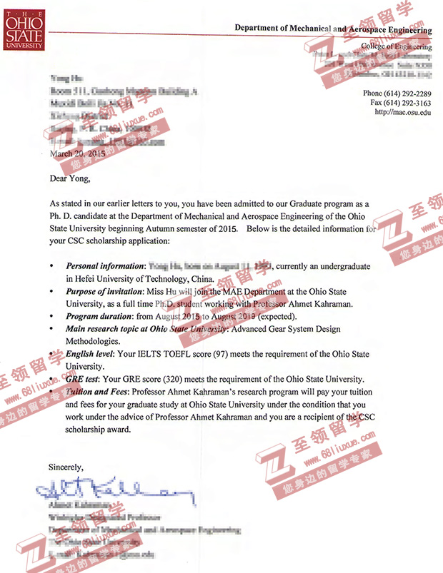 录取结果:俄亥俄州立大学机械OSU ME PhD录取
