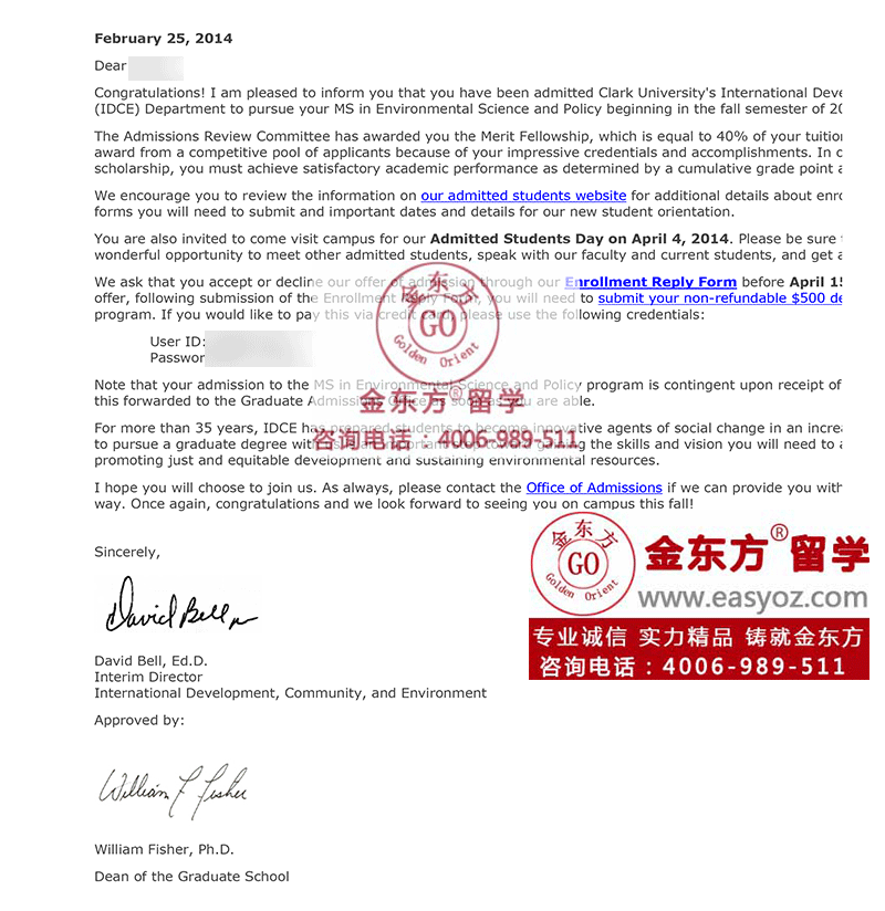 录取结果:克拉克大学,环境科学与政策专业硕士