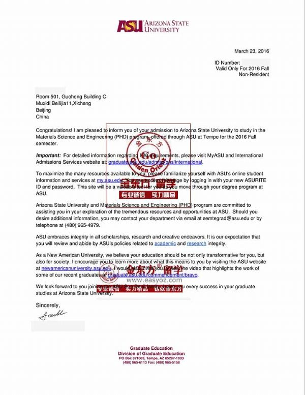 录取结果:亚利桑那州立大学, PhD in Materials Science and Engineering