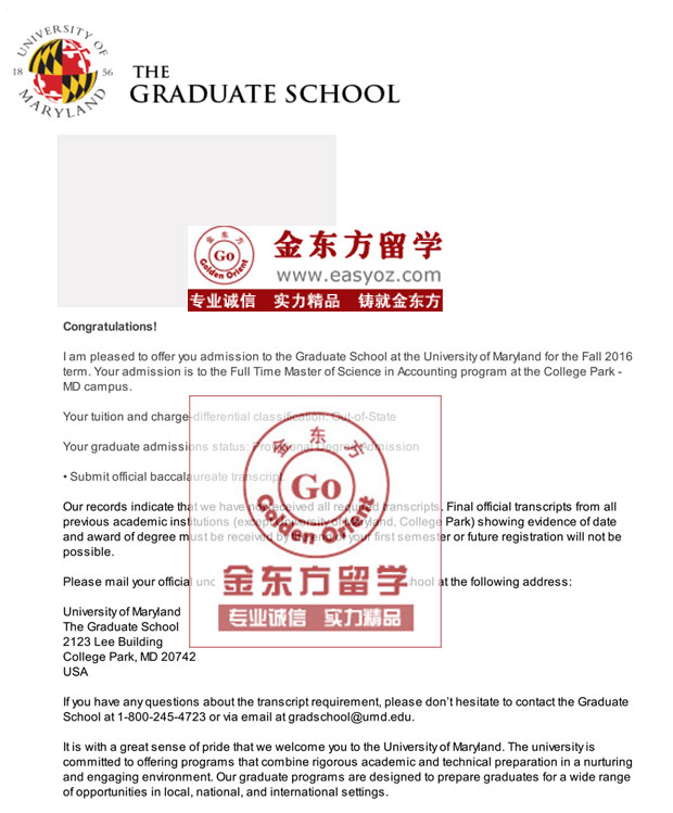 但是对于马里兰大学,作为S同学的目标院校,是想也不敢想能得到这个offer的。因为作为一个排名较高,知名度较高的学校,也是更多学生的理想学校。而受限于GMAT成绩,S同学一直把这个学校当成自己的冲刺院校。怀着攻克马里兰大学的决心,S同学和金东方的老师并肩作战,终于赢得了录取委员会的亲睐。马里兰大学的offer来之不易,这也让我们更加相信金城所致,金石为开。