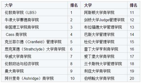 针对商学院的排名的并不多,这里选用的是《金融时报》(Financial Times)发布的商学院排名,相对而言,《金融时报》排名的统计工作是第三方机构毕马威进行审计的,比较客观。