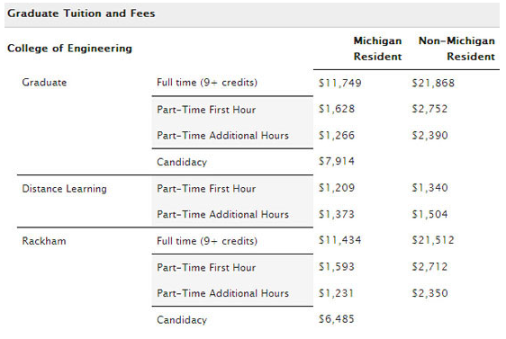 密歇根大学安娜堡分校计算机专业学费