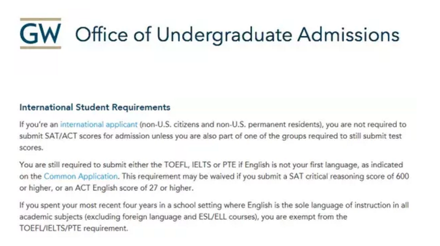 此外,从去年开始乔治华盛顿大学也完全取消了对国际考生SAT/ACT成绩的要求。