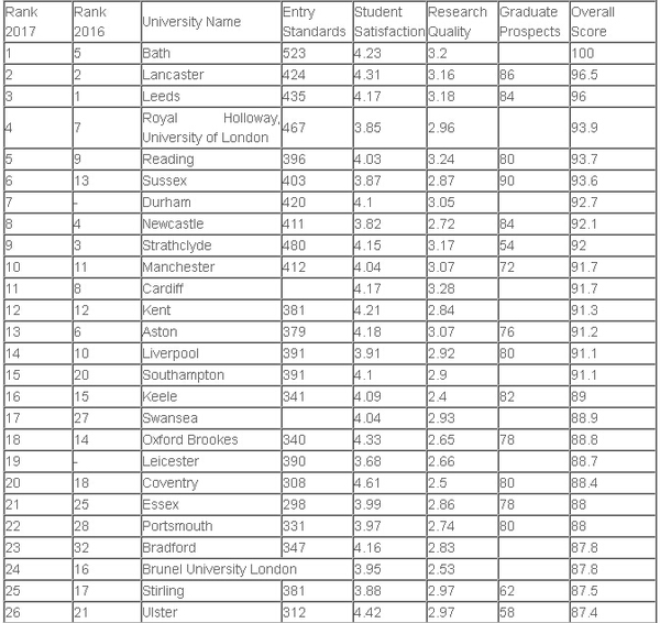 《完全大学指南》近期公布了2017年英国大学市场营销专业排名,CUG排名全称是The Complete University Guide,从2007年开始发布。CUG2017年排名数据来源主要为三家,NSS,2014REF和HESA。