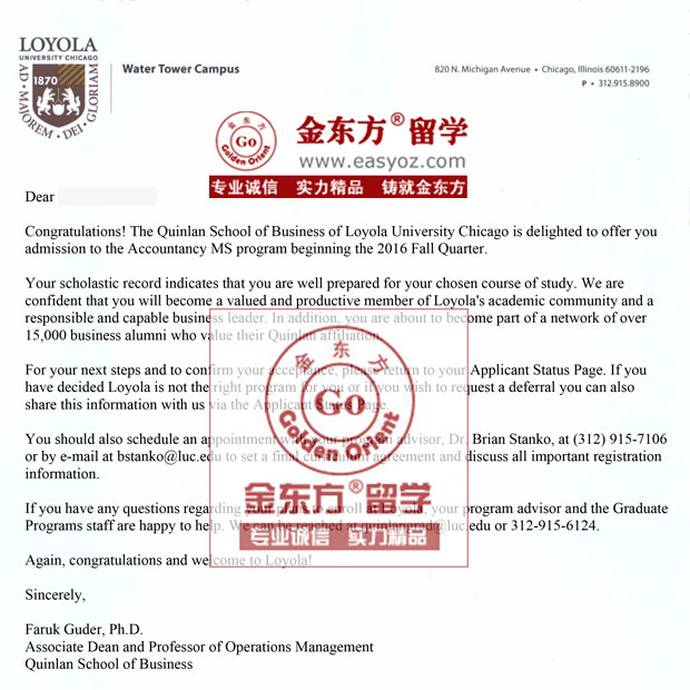 由于面试前,X同学与老师们做了几次面试模拟,将面试可能遇到的问题都整理了一遍,并准备了比较完整并能够突出个性特点的回答。所以整个面试进行得比较顺利,并于面试完一个月,最终斩获了洛约拉大学会计硕士的offer。