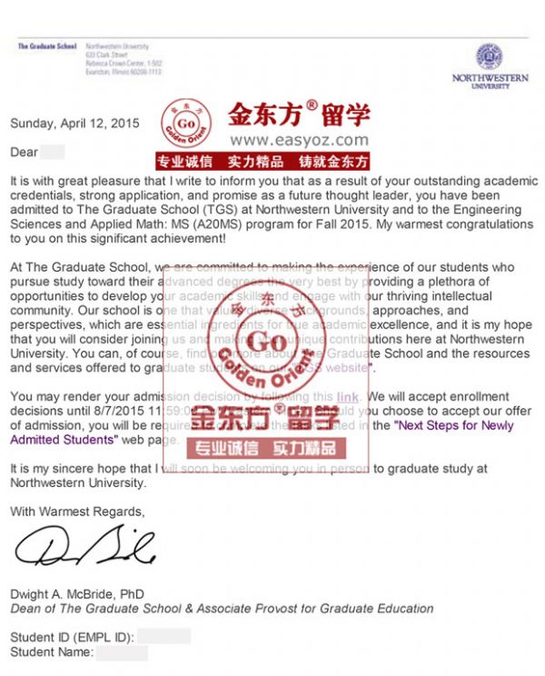 终于在2015年4月初,白同学收到了美国西北大学的录取OFFER,白同学非常感谢金东方留学服务团队。当然能有这么一个好的申请结果,是学生与老师的默契配合。希望白同学未来的留学路一帆风顺,学业有成。