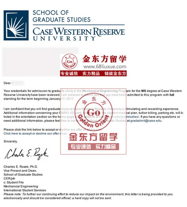录取结果:Case Western Reserve University凯斯西储大学,MS in Mechanical Engineering(机械工程专业)