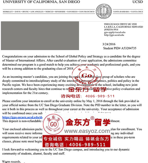 录取院校:加州大学圣迭戈分校UCSD国际事务硕士(MIA)