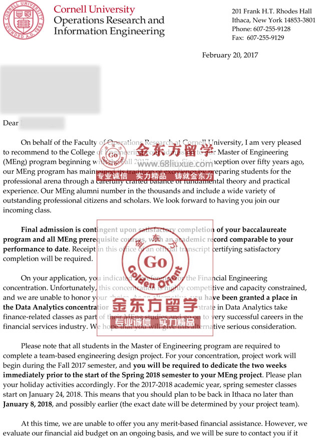 申请是在11月份递交的,在递交材料后我们向每一所申请的学校邮件确认申请材料是否齐全。在保证材料顺利到达学校的同时,我们也密切关注着学校的动向。在经历了两个多月的焦急等待后,程同学收到了康奈尔大学发来的录取通知。知道消息的这一刻,程同学高兴地跟个孩子一样,而我们也同样高兴将这位“学霸”送到了“神级”的学术殿堂-康奈尔大学读数据分析硕士。