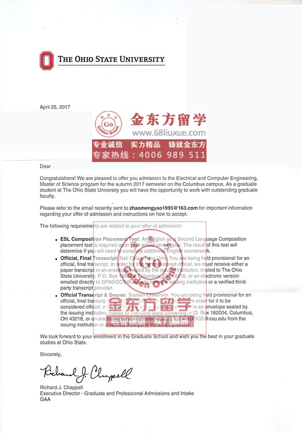 录取结果:Ohio State University俄亥俄州立大学, MS in Electrical and Computer Engineering电气工程与计算机工程硕士