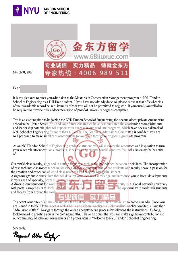 录取结果:New York University纽约大学,MS in Construction Management 建筑工程管理硕士