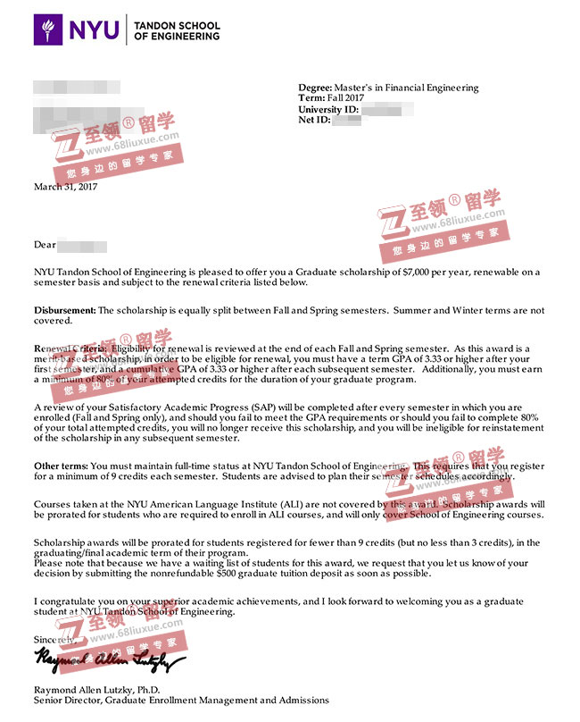 在双方的共同努力下,陶同学如愿获得了纽约大学金融工程硕士的录取。