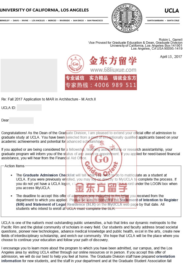 录取结果:University of California—Los Angeles(加州大学洛杉矶分校),M.Arch II