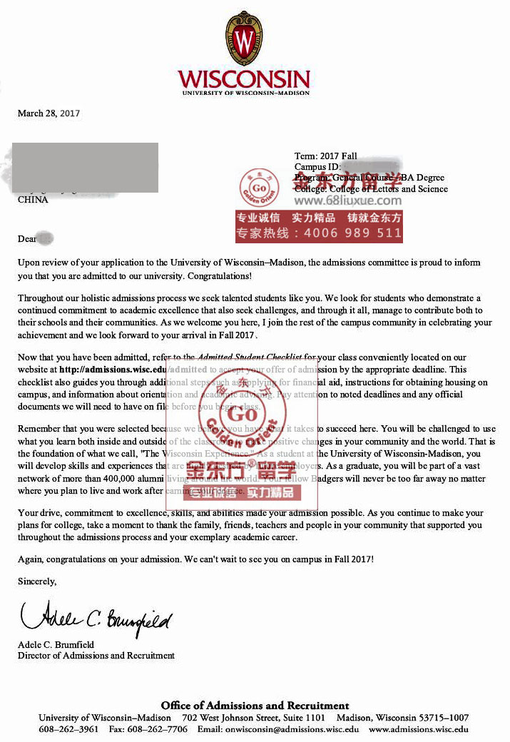 录取结果:University of Wisconsin, Madison威斯康星大学麦迪逊分校