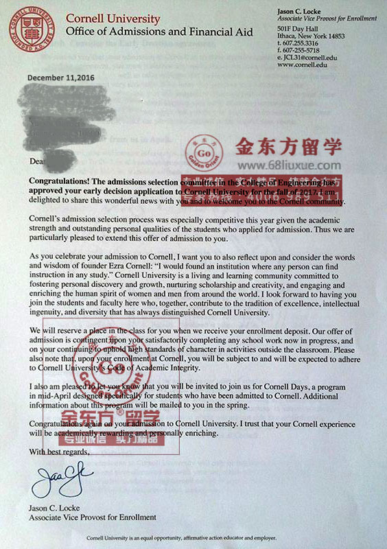 创作好了文书后,接着就是在线提交申请,寄送资料,跟踪申请进度等一系列琐碎的事情。大约是等了一个多月的时间,韩同学拿到了康奈尔大学的ED录取,真是可喜可贺啊。
