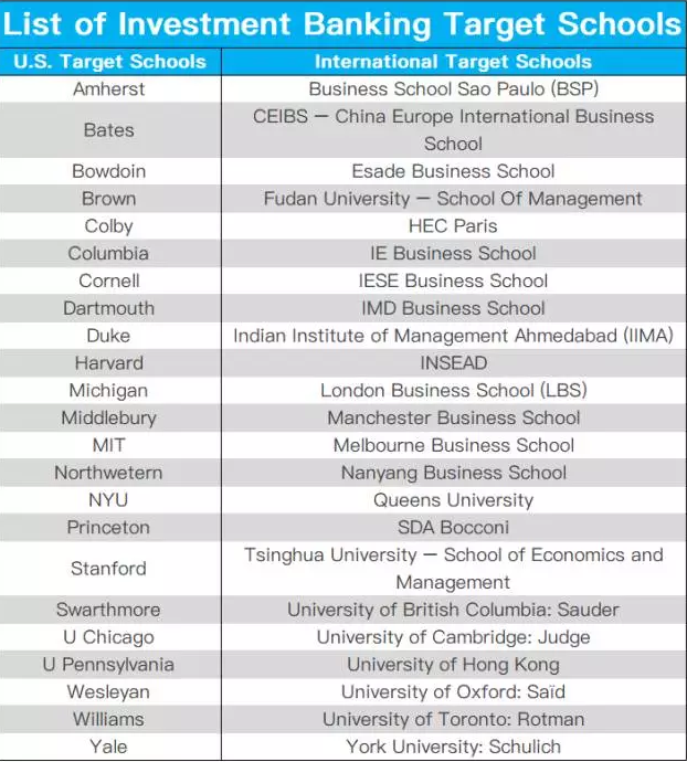 即便如此,榜单中的学校在投行招聘中还是会依旧占有极大的优势。