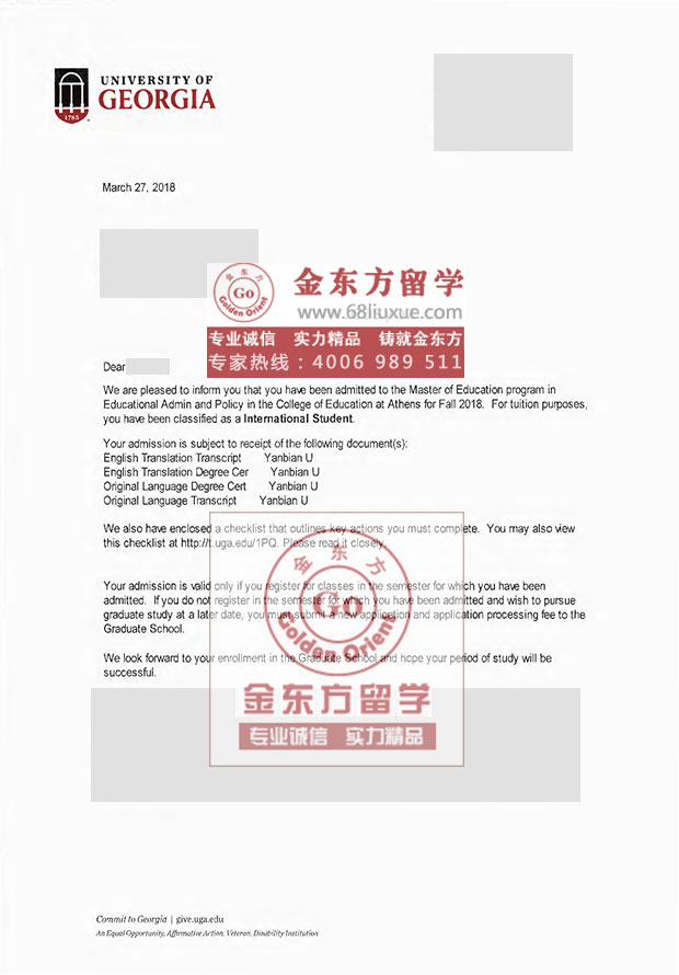 录取结果:University of Georgia佐治亚大学,MEd in Educational Administration and Policy
